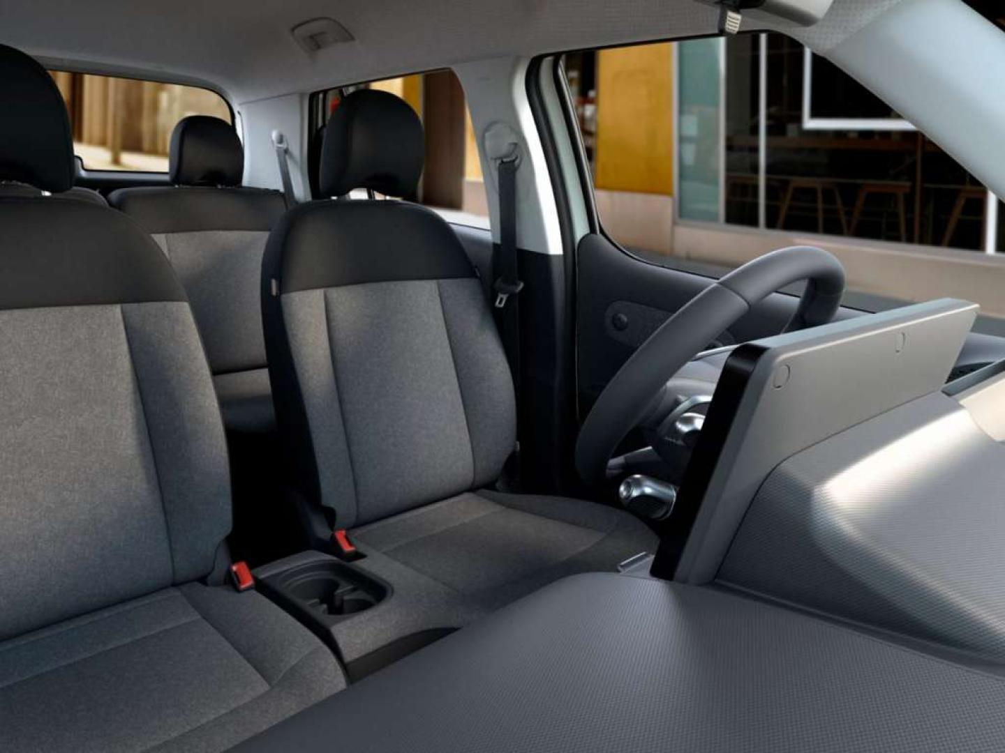 • Asiento delantero del conductor individual, térmico, ajuste longitudinal manual y ajuste manual en altura con respaldo plegable a posición de mesa y ajuste manual del respaldo, asiento delantero del acompañante individual, térmico, abatible y ajuste longitudinal manual con respaldo plegable a posición de mesa y ajuste manual del respaldo