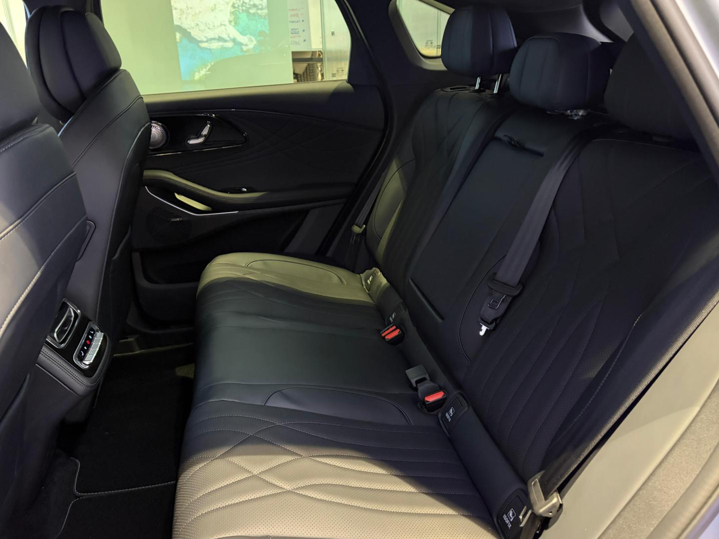 • Asientos traseros de tres plazas de tipo banco ajustables eléctricamente ( un ajuste eléctrico ) térmicos y ventilados de orientación delantera abatibles en el suelo con banqueta fija, respaldo abatible asimétrico y ajuste eléctrico del respaldo