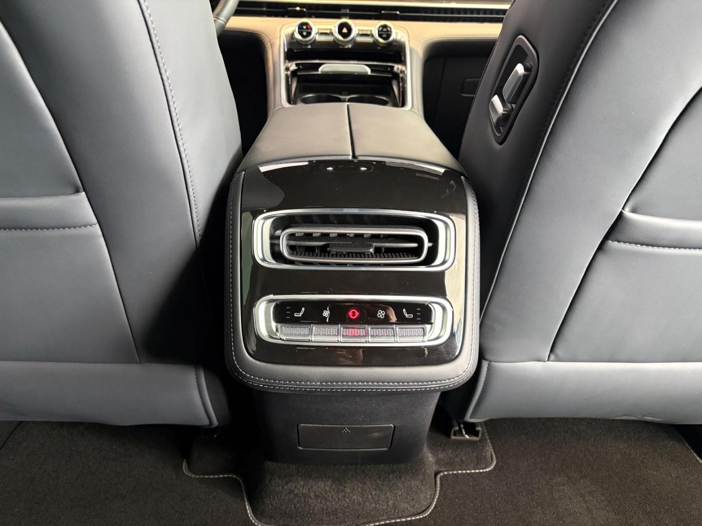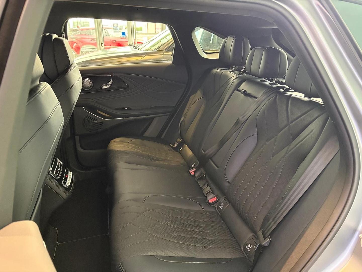 • Asientos traseros de tres plazas de tipo banco ajustables eléctricamente ( un ajuste eléctrico ) térmicos y ventilados de orientación delantera abatibles en el suelo con banqueta fija, respaldo abatible asimétrico y ajuste eléctrico del respaldo