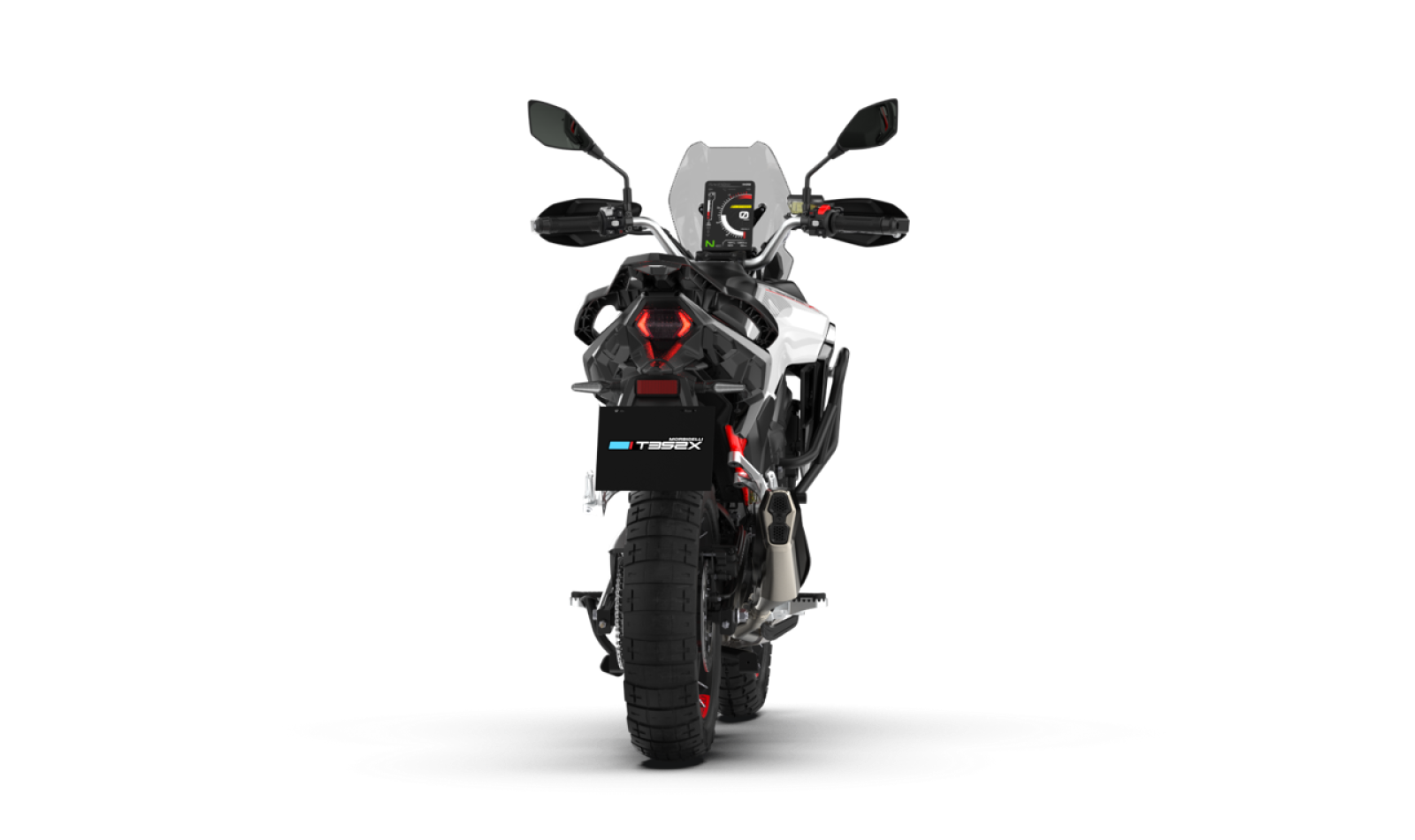 Pantalla vertical tipo rally con 3 modos de conducción (Estándar, Deportivo y Off-road). Integración completa con Morbidelli Connect: navegación GPS, botón SOS, antirrobo con apagado remoto y 1 año de acceso a la aplicación incluido.